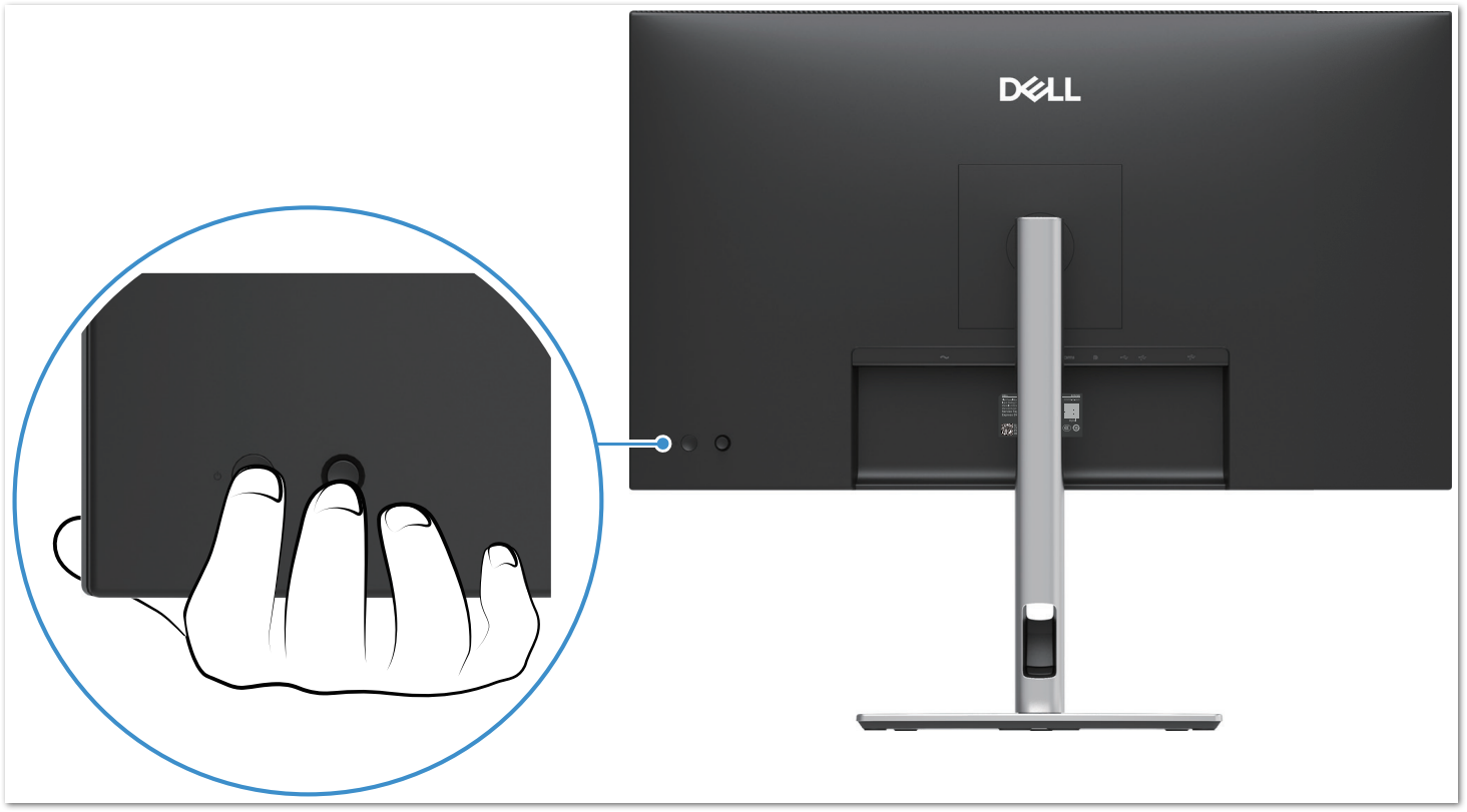 - Druk een keer op de kleine joystick op de achterkant van de monitor.